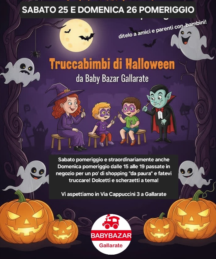 L’invito è per sabato 25 e per il pomeriggio di domenica 26 ottobre, dalle 15.00 alle 19.00, quando Baby Bazar Gallarate si trasformerà in un piccolo regno incantato del riuso, dove anche i mostriciattoli più spaventosi sapranno fare del bene… all’ambiente.