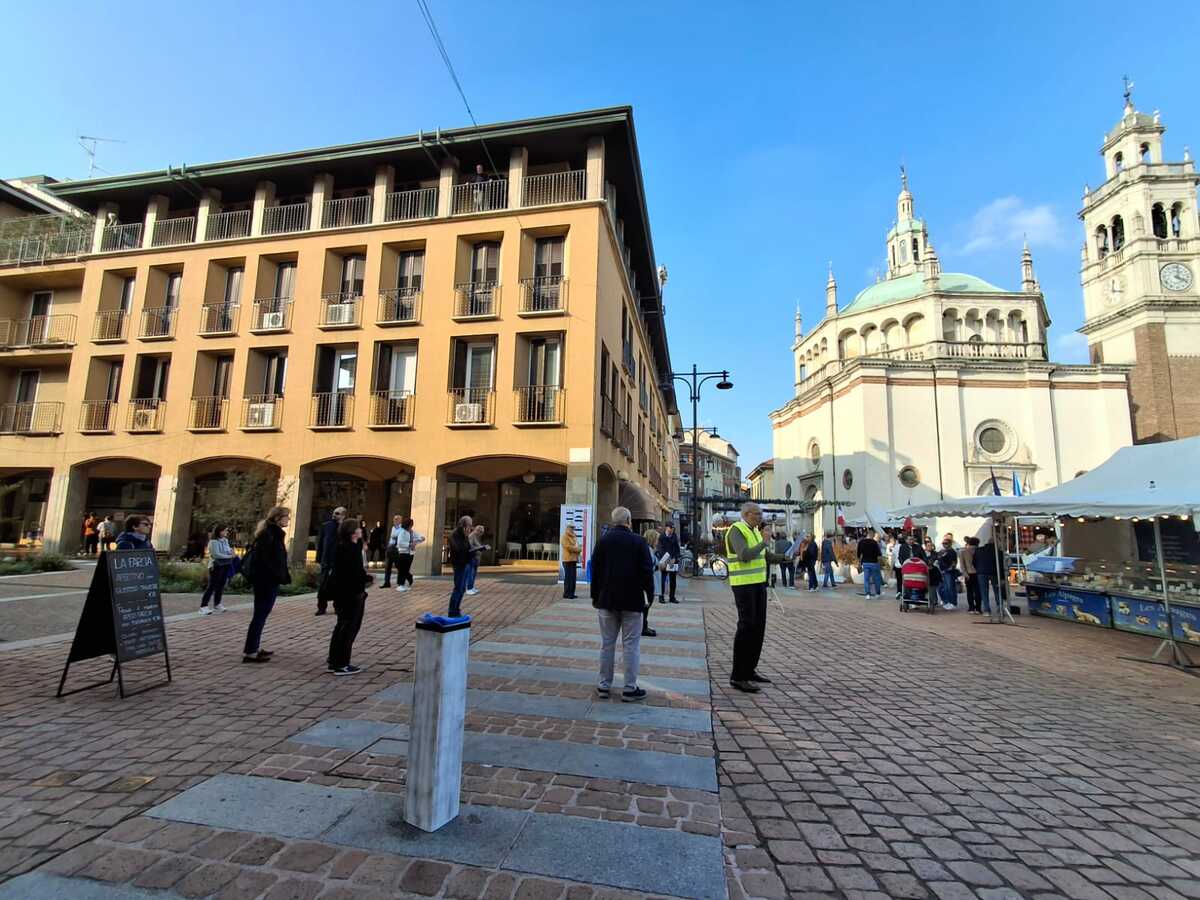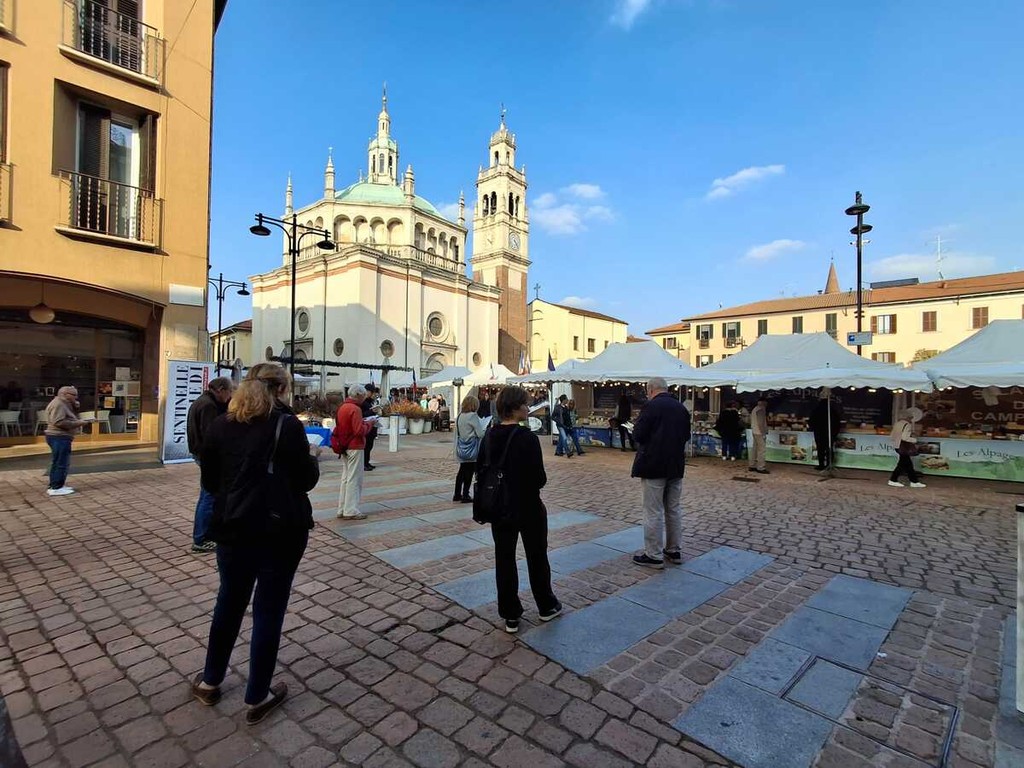 C’era chi fendeva lo schieramento delle “Sentinelle in piedi” come se nulla fosse, chi raccoglieva i volantini informativi, chi entrava e usciva dal mercato francese mostrando semplice curiosità e chi tradiva sul volto inequivocabili segni di smarrimento: ha composto uno strano binomio, oggi in piazza Santa Maria, la presenza contemporanea del mercatino regionale e del presidio contro il suicidio assistito. Da una parte, come di consueto muti e immobili, libro in mano, gli attivisti che sensibilizzavano sulla sentenza della Corte Costituzionale 212 del 2019: «Ha aperto una ferita in qualcosa di inviolabile, ha escluso la punibilità dell’aiuto al suicidio in casi eccezionali, ora la stessa Consulta vuole trasformare quell’eccezione in regola». Dall'altra, nell’ambito di BA Autunno, stand aromatici proponevano, tra i tricolore d’oltralpe, salumi e formaggi che invitavano a essere violati da denti e palati.