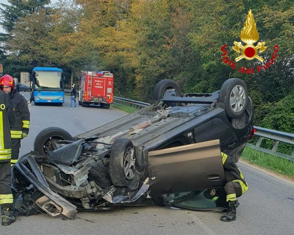 FOTO. Incidente stradale tra due auto a Varese, macchina ribaltata in via Gaggio