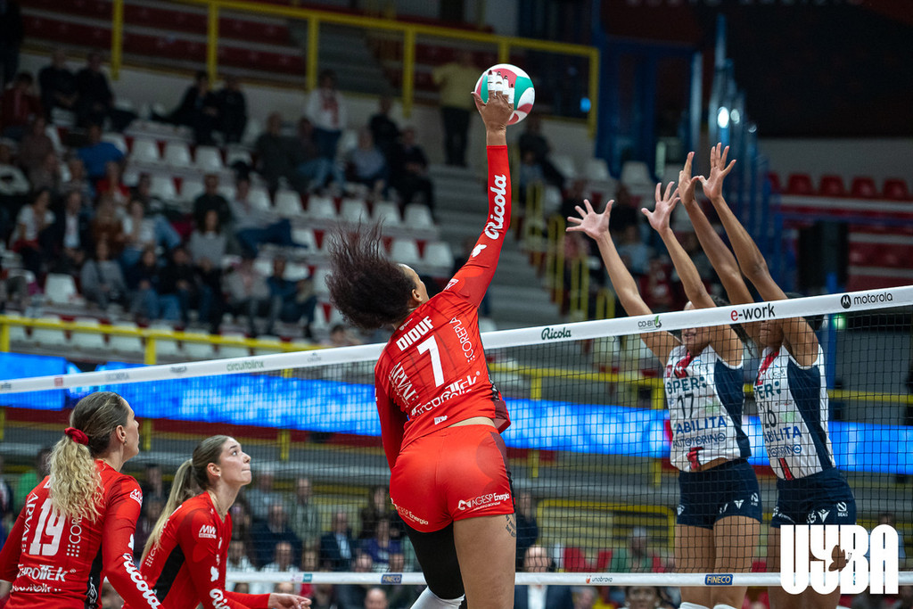 Valentina Diouf in una fase di gioco contro Bergamo (foto Uyba - Gabriele Alemani)