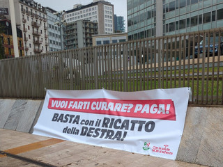 Presidio davanti a Palazzo Pirelli e striscioni contro la giunta lombarda: le consigliere e i consiglieri regionali del Pd chiedono una sanità pubblica «universale, accessibile e di qualità», sostenendo la proposta di legge di iniziativa popolare firmata da oltre 100mila cittadini per cambiare il sistema sanitario regionale