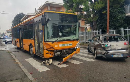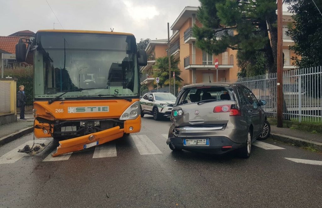 Bus di studenti contro un'auto: incidente in via Monfalcone a Busto