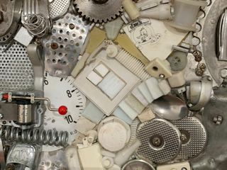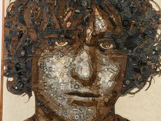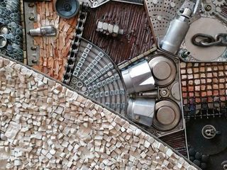 La forza attrattiva delle sue composizioni risiede infatti nel fascino ancestrale di simbologie complesse raccontate attraverso dettagli minuti da apprezzare centimetro per centimetro: scampoli di tessuti, viti, bulloni, chiodi, frammenti di carta stampata, fili di rame, cocci di ceramica. Oggetti ritenuti ormai inutili, rinvenuti dal fondo di un cassetto, tra gli scarti della produzione industriale oppure cercati e recuperati in discarica, ovvero in quel non-luogo desolante e inanimato generato da una società che consuma tutto velocemente, in maniera vorace. Tra le mani dell’artista questi piccoli oggetti assumono una valenza diversa, acquistano un nuovo senso e una nuova funzione, diventano le sillabe di un racconto visivo o le note di uno spartito musicale.