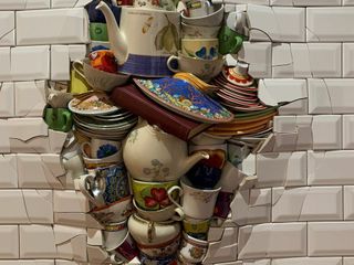 La musica, così importante nel percorso personale di Ivan Tozzo, sembra guidare in maniera significativa anche le sue scelte compositive. Osservando le sue opere, lo sguardo cade inevitabilmente su alcuni dettagli posti sapientemente in evidenza, per poi scivolare lungo linee di forza invisibili, soffermarsi su scritte o particolari insoliti, planare in un punto cromaticamente omogeneo, risalire notando una sequenza di elementi identici posti ad una distanza ravvicinata, soffermarsi di nuovo su un elemento accattivante. In maniera inconscia, l’occhio induce la mente a ricostruire una sorta di ritmo visivo ed è questo ritmo a stabilire e a sostenere il rapporto tra l’opera e lo spettatore. Ritmo, movimento, energia: sul piano strettamente formale, sono queste le istanze dominanti delle sue creazioni. La forza evocativa delle sue ricerche affonda invece le radici in un immaginario indubbiamente personale ma, al tempo stesso, condivisibile. Riconoscere gli oggetti impiegati dona il piacere di richiamare alla memoria sensazioni, emozioni, ricordi ormai dimenticati. Gli oggetti sono mostrati sotto una nuova luce, non più per la loro funzione originaria ma per le loro nuove, possibili, qualità estetiche. Con trasporto, e con una spiccata ironia, l’artista ci guida in un mondo di giocattoli vintage, di tazze e di ceramiche a decori floreali come quelle della nostra nonna, di lampadine trasformate in simpatici personaggi, di ragni-robot con grandi occhi e buffi cappelli, di sfere futuristiche dotate di ingranaggi forse inutili, ma funzionanti. Lattine accartocciate, tubetti di colore, frammenti di testi strappati da vecchie pagine ingiallite, minuscoli carillon a manovella: se accolto, osservato e valorizzato, ogni elemento può trasformarsi in un potente veicolo di comunicazione. La comprensione del messaggio è sempre suggerita, mai rivelata ed è questa, forse, la cifra che maggiormente contraddistingue Tozzo. L’enigma. Il mistero. La suggestione.