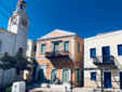 Pochi metri più in alto, una piazzetta si apre all’improvviso: tavoli di legno, un muro bianco con una sola parola scritta in nero — “Mediterraneo”. È impossibile non pensare al film di Gabriele Salvatores, girato qui e premiato con l’Oscar. Una storia di uomini sospesi tra la guerra e una terra remota che li disarma, prima ancora di accoglierli. Quella scritta non è decorazione: è memoria sedimentata, più incisiva di qualunque brochure. Attorno, muri scrostati e facciate restaurate convivono senza spiegazioni; la scena è vuota e viva allo stesso tempo, come se qualcuno dovesse comparire da un momento all’altro. Poco distante si trova la Santrapeia School, fondata nel 1903 della diaspora greca che è uno degli edifici simbolo di Kastellorizo. La sua architettura neoclassica, con colonne e timpano, testimonia il periodo di grande sviluppo a inizio Novecento, quando cultura e commercio fiorivano grazie alla posizione strategica e al momento storico. Oggi l’edificio resta un punto di riferimento solo identitario per gli abitanti.