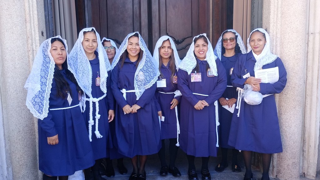 Oggi, domenica 26 ottobre, la basilica di San Giovanni all’esterno era addobbata di viola e di bianco, i colori simbolo della ricorrenza ottobrina. Per l’occasione, una delle più importanti del Perù, uomini e donne si sono vestiti con gli abiti tipici di questa festa, di colore viola con un cordone bianco in vita, oltre al velo di pizzo per le donne.