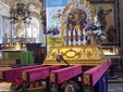 Il grande baldacchino, dopo la messa, gremitissima, delle 11.30 celebrata dal prevosto mons. Severino Pagani, è stato portato a spalla in processione per le vie del centro: da piazza San Giovanni a piazza Garibaldi, poi via Zappellini fino ad arrivare all’oratorio San Luigi.
