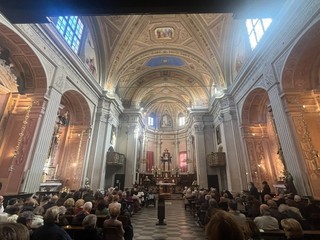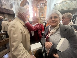Tanti non riescono a trattenere le lacrime di fronte a questa figura di umanità e fede - come ha rimarcato padre Celeste Pianezze - che è Ginetto Grilli. Compirà 100 anni il 31 dicembre, questo ragazzo dai capelli bianchi, di fronte al quale la nipote Augusta Grilli ha sottolineato: «Curare la stampa di questo libro è stato un onore, una scoperta, una riscoperta di tante cose che mi hanno commossa... qui c'è tutta la storia di Ginetto, della famiglia, di Sacconago». Con tutte le sue emozioni, parola chiave che attraversa le pagine e l'aria. «Un'operazione nobile e identitaria», ha commentato l'assessore a Cultura e Identità Manuela Maffioli quando ci si è spostati in sala adunanze per la festa tutti insieme. Davvero, in questo prezioso testo attraversiamo anno dopo anno le tradizioni, la chiesa, le persone che si muovono dentro e attorno, con pennellate uniche di dialetto, ma anche i viaggi reali e virtuali, la devozione, fatti «strani e inquietanti» e altri dolcissimi. Ritratti, tra i quali non può che primeggiarne uno: dedicato alla sua Principessa, l'indimenticata Agnese.