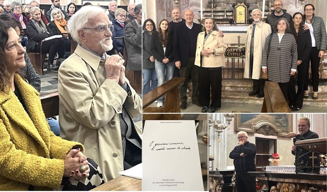 Nella Chiesa Vecchia - la Chiesa Bella, meglio - di Sacconago non ci sta più neanche uno spillo. Le sue porte si sono spalancate per la festa di San Cirillo e subito si è riversata in chiesa una folla che voleva ascoltare, vedere, abbracciare il "suo" Ginetto Grilli. Il cantore sinaghino, il cittadino benemerito di Busto Arsizio, l'uomo che a 99 anni e 10 mesi vede alle stampa un nuovo libro, la raccolta di testi per il Canto Novo dal 1998 ai giorni d'oggi.
