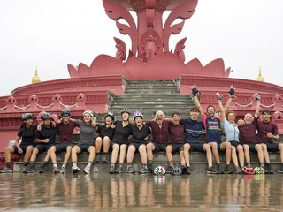 I nostri ragazzi, i prof e Andrea pedalato sotto il monsone, con il vento contrario e il caldo insostenibile di un paese fragile e accogliente: la Cambogia.