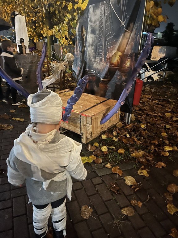 Nell'area di via San VIto è stata ricreata una cornice affascinante e surreale, anche grazie ai MastrArtisti e al Comitato Genitori, con fantasmi, mostri, inquietanti bare che si aprono e finte maghe, oltre ai gonfiabili mostruosi. E ancora il tunnel della paura: all'inizio una coda timida, poi chi se ne frega della pioggia, ecco la folla che è cresciuta e le persone erano in attesa fino ai cancelli per avere un po' di divertenti brividi.