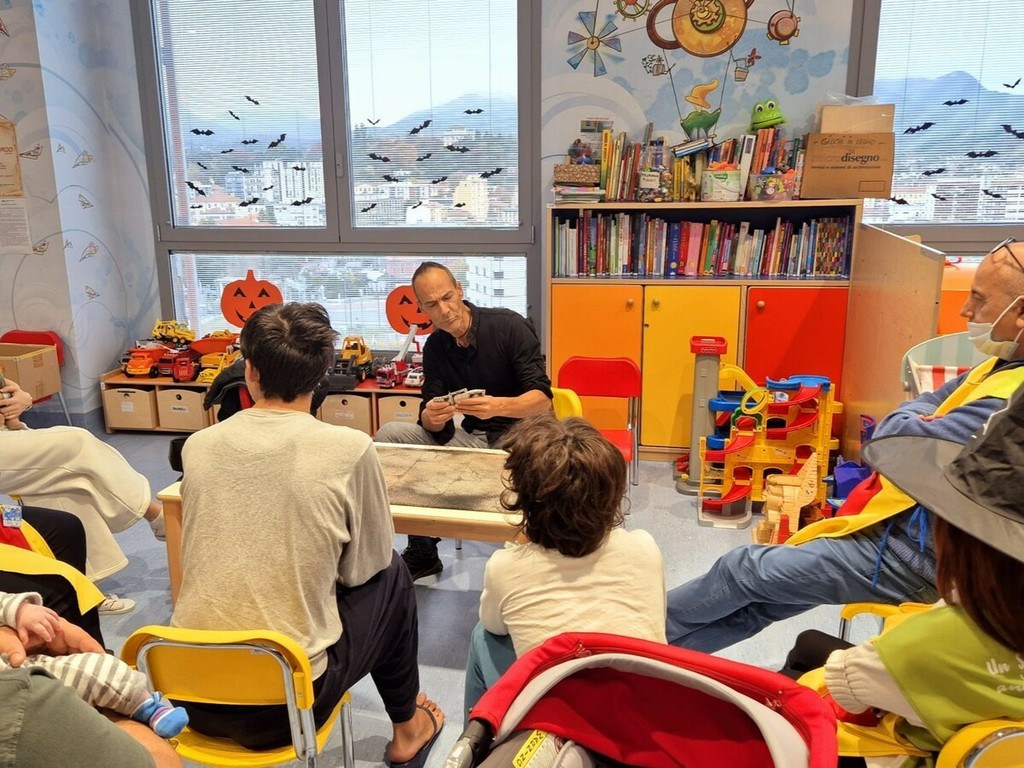 Un’occasione preziosa che ha portato sorrisi e normalità, dimostrando ancora una volta quanto l’immaginazione e il gioco possano rendere più leggero il percorso di cura. E… anche magia, grazie al volontario Walter Maffei, illusionista famoso.