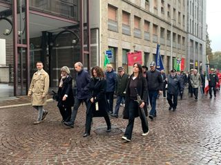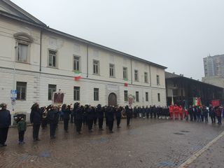 Il corteo ha poi raggiunto piazza Garibaldi dove, all’ingresso della zona pedonale di via Milano, la Fanfara dei bersaglieri “Tramonti-Crosta” ha eseguito alcuni brani.