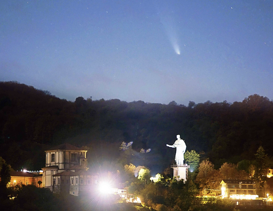 Questa volta l'affascinante oggetto celeste è stato ripreso mentre sembra accarezzare dall'alto il San Carlone, uno dei simboli di Arona e del lago Maggiore. A scattare l'immagine ancora una volta il nostro lettore Francesco Cotroneo, autore già della foto della Lemmon sopra la rocca di Angera (leggi QUI).