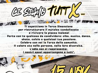 L’invito è a partecipare portando una merenda, uno skateboard, un pallone o qualsiasi cosa da condividere con gli altri, per vivere insieme un momento di creatività, dialogo e amicizia. Perché, come ricordano gli organizzatori, «un murale si può imbrattare, ma una comunità che si stringe non si può fermare».