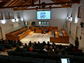 All’interno, la presentazione dei progetti è stata condotta dal sindaco Andrea Cassani insieme ai tecnici comunali e progettisti incaricati. Cassani ha voluto chiarire sin da subito la questione economica, oggetto di molte polemiche: «Qualcuno con chiara volontà di fare disinformazione dice che il palazzetto è costato 8 milioni e mezzo. L’impegno economico reale è di 6 milioni di euro per la realizzazione di entrambe le strutture».