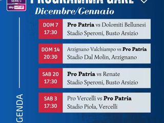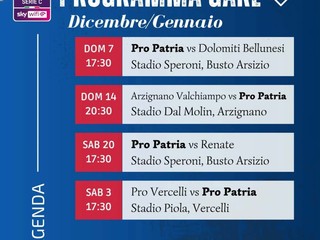 Quattro partite per chiudere il girone d’andata, inaugurare il ritorno e - si spera - anche un nuovo anno all’insegna del riscatto. È questo il percorso che attende la Pro Patria tra dicembre e gennaio, con in mezzo la consueta sosta natalizia.