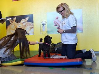 La Belle letteraria e cinematografica è un imponente cane da montagna dei Pirenei, lungo pelo fluente e bianco. La Belle che farà regolare visita alla Pediatria di Busto, un barbone nano, è il suo contrario, almeno dal punto vista estetico: minuta, riccia, scura. Punti in comune tra le due: la capacità di entrare in contatto con le persone, di mettersi in relazione. La Belle vera, la dottoressa Belle, ha fatto conoscenza con il suo nuovo posto di lavoro oggi. Con la sua conduttrice, Michela, ha accolto per la prima volta i giovani pazienti, dai bambini anche piccolissimi agli adolescenti, nella stanza che sarà il suo ambulatorio.