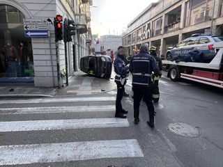 Incidente poco prima delle 8 di domenica all'incrocio tra via Veneto e via Avegno. Sul posto due ambulanze, vigili del fuoco, polizia locale e pattuglie della Questura