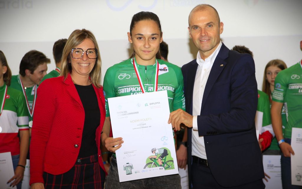 Sul palco dell’Auditorium Testori di Palazzo Lombardia, gremito in ogni ordine di posto, sono saliti Michelle Spinoni, campionessa regionale su strada tra le esordienti primo anno e bronzo ai campionati italiani di Gorizia, Noemi Poletti, campionessa regionale XCE, Valeria Terzi e Giuseppe Palazzo, entrambi campioni regionali XCO. A celebrare i giovani atleti c’erano anche il presidente della FCI Cordiano Dagnoni e i tecnici delle nazionali italiane di strada, pista e fuoristrada: Ivan Quaranta, Mirko Celestino, Marco Velo e Marco Villa.