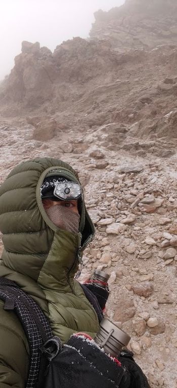 Seconda tappa, la conquista del Monte Damavand (5.670 m), il vulcano, attivo, più alto dell’Asia e vetta più alta del Medio Oriente. «In sé e per sé l’ascesa non viene considerata particolarmente difficile. Altra cosa sono le condizioni climatiche: possono cambiare in pochissimo tempo e diventare proibitive. Con me c’erano ancora Matin Tootazehi e Beiti, una delle figure più esperte dell’alpinismo iraniano, guide obbligatorie per una spedizione che, nella sua forma, è stata una prima assoluta nella storia dell’Iran. Sono stato il primo italiano ad aver raggiunto la vetta del Damavand in una stagione ad alto rischio, in completa autonomia e senza alcun tipo di tenda o rifugio. Una prima mondiale per modalità estreme di scalata, un’impresa mai tentata prima. È curioso ricordare che Reinhold Messner tentò un’ascesa in condizioni simili ma fu costretto a ritirarsi a causa di una bufera analoga. Non mi stupisce, anche noi ci siamo confrontati con temperature impossibili, abbiamo dormito a 14 sotto zero, si sono toccati i -30, il ghiaccio si formava anche sulla torcia».