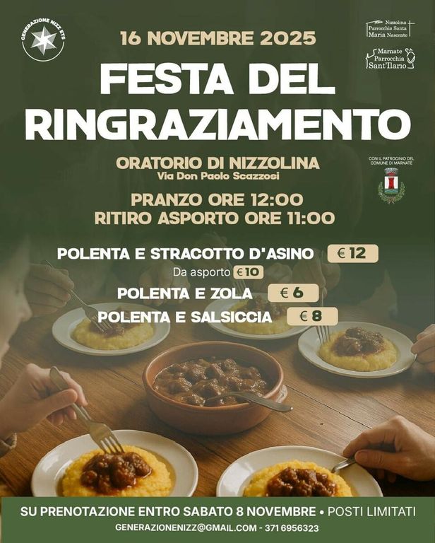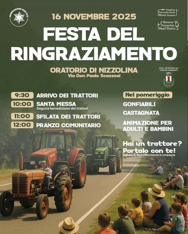 Con il patrocinio del Comune di Marnate e la collaborazione delle parrocchie di Sant’Ilario e Santa Maria Nascente, domenica 16 novembre andrà in scena la Festa del Ringraziamento, dedicata alla comunità, alla terra e ai suoi frutti.