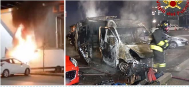 FOTO. Un furgone e due auto distrutte dalle fiamme: serata di fuoco a Venegono Inferiore