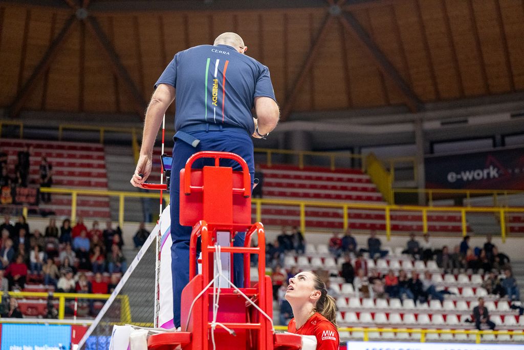 L’e-work arena, va detto, non era gremita: il calendario fitto, l’orario serale del mercoledì e perfino l’“effetto Sinner” in tv (con il nostro numero uno del tennis in campo alle ATP Finals di Torino) hanno lasciato qualche vuoto sugli spalti. Ma chi c’era, compresi i tifosi più multitasking con un occhio al telefonino per seguire il tennis e l’altro sul taraflex per tifare Uyba, ha avuto di che divertirsi.
