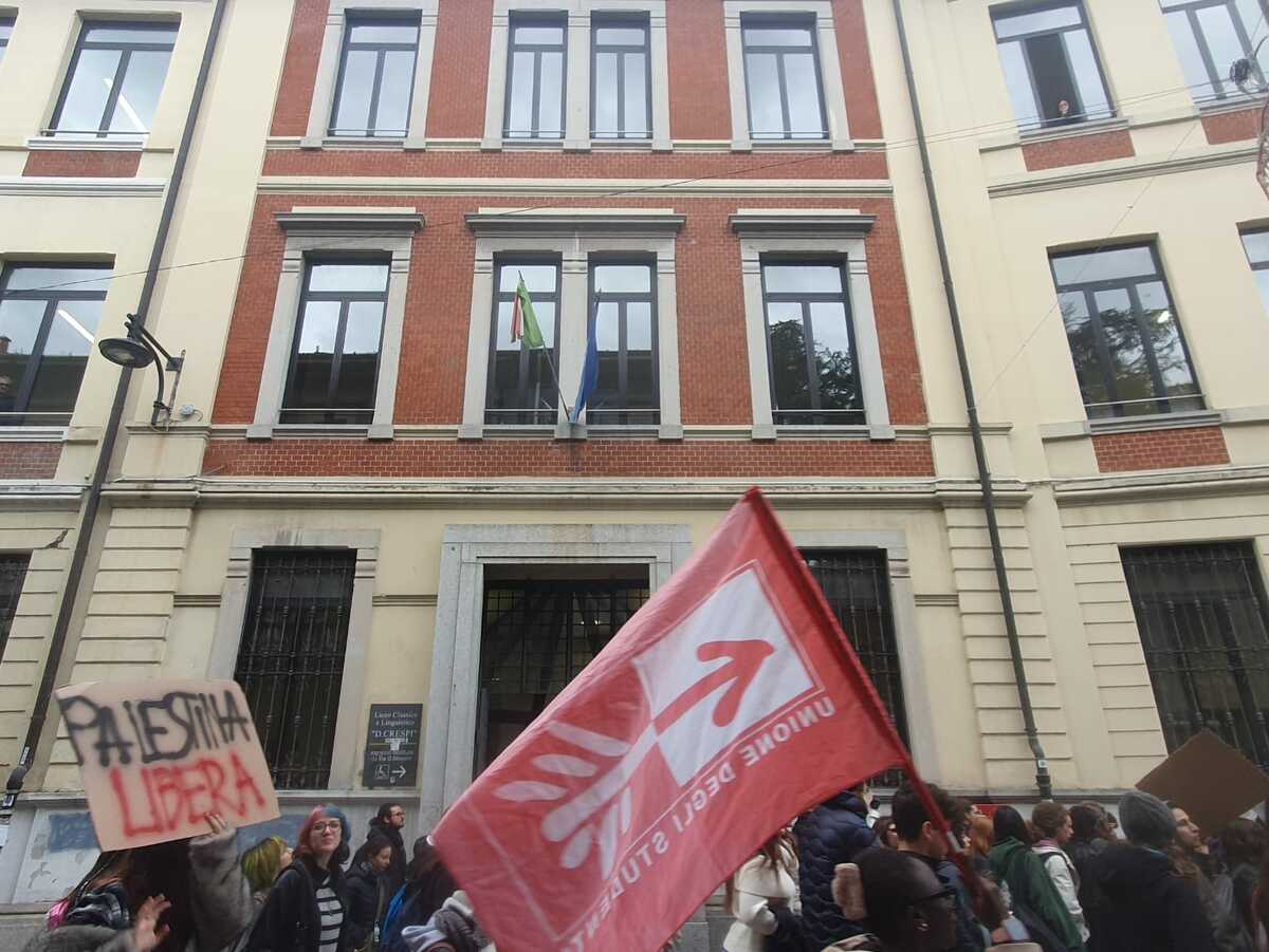 «Siamo tutti antifascisti! Siamo tutti antisionisti!», l’urlo che ha aperto la manifestazione. Prima tappa in piazza Garibaldi, dove gli studenti al microfono hanno contestato la riforma del ministro dell’Istruzione Giuseppe Valditara: «Immagina una scuola che “addestra” al lavoro, non che educa alla partecipazione e allo spirito critico».