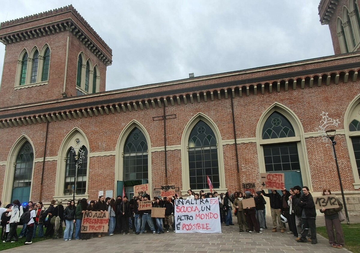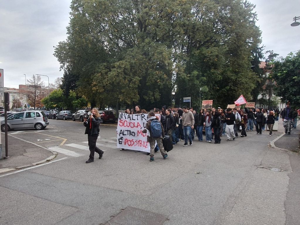 Contestazione per i «tagli ai fondi per la scuola pubblica» e i «miliardi per il riarmo». «Non siamo in piazza per saltare la scuola, ma perché vogliamo costruire una scuola nuova, pubblica, inclusiva, che educa e non addestra, che aiuta gli studenti a diventare cittadini consapevoli e non lavoratori rassegnati e sottomessi alle regole imposte».