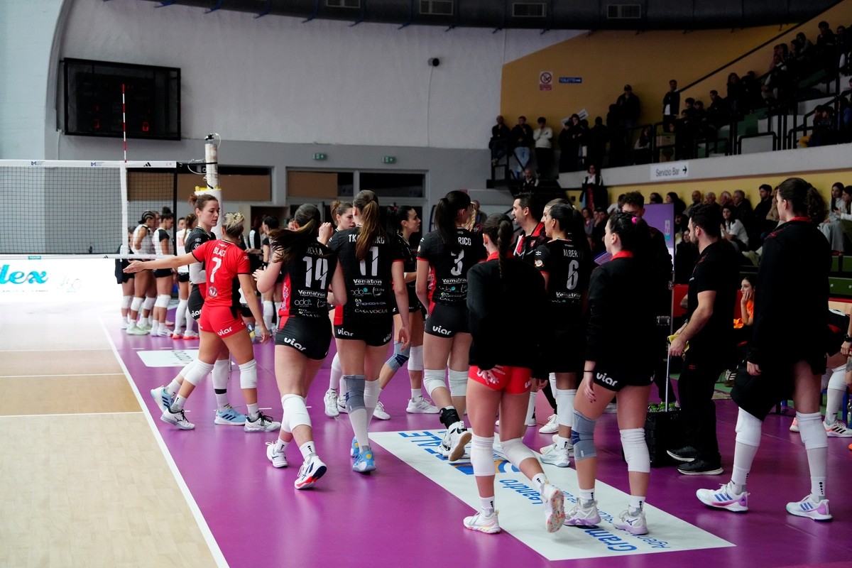 Chiave fondamentale del successo biancorosso è stato l’ottimo lavoro in battuta che ha fruttato la cifra record di 17 ace (5 per Rebora). La costante pressione sulla ricezione ospite si è rivelato un altro aspetto fondamentale, così come il buon rendimento negli altri fondamentali, con la ricezione al 44% di perfetta (clamorosa Sophie Blasi al 71%), l’attacco al 37% e un consistente bottino a muro (12 totali, 7 dei quali griffati da una Farina a quota 20 punti per la seconda volta consecutiva). MVP del match è Veronica Taborelli, autrice di 28 punti col 48% e 3 ace, ma soprattutto sempre più punto di rifermento nei momenti decisivi della gara. Contributo importante anche quello giunto dalla regia sempre più sicura di Helena Sassolini, da Marika Longobardi (17 punti), Bianca Orlandi (solida in ricezione col 41% di perfetta), e dal solito grande cuore di capitan Sofia Rebora (14).