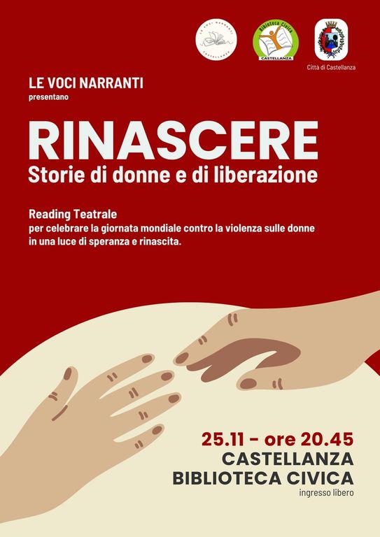 Il programma delle serate organizzate si apre martedì 25 novembre con «RINASCERE: storie di donne e di liberazione», un live reading a cura del gruppo “Le Voci Narranti” della Biblioteca di Castellanza. L’iniziativa si concentra sulla parola chiave “rinascita” attraverso la lettura di testimonianze autentiche di donne che hanno superato situazioni di violenza, offrendo al pubblico una prospettiva di speranza concreta e documentando l’attività svolta dai centri antiviolenza del territorio. Le Voci Narranti è un gruppo di lettura costituito da persone accomunate dalla passione per la narrazione e dall’interesse a donare la propria voce alla comunità. Da anni il collettivo collabora con il Comune di Castellanza partecipando a eventi culturali, mostre, serate tematiche e progetti di promozione della lettura rivolti a diverse fasce d'età.