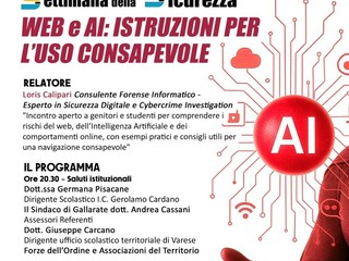 Prende ufficialmente il via a Gallarate la Settimana della Sicurezza, un percorso di sensibilizzazione dedicato ai temi più urgenti dell’era digitale. Questa sera lunedì 17 novembre 2025, alle 20.30 in via Bellora 1, l’Istituto Comprensivo Gerolamo Cardano apre le porte a genitori, studenti e cittadini per l’incontro “Web e AI: Istruzioni per l’Uso Consapevole”, un appuntamento che mette al centro l’educazione alla sicurezza informatica e alla responsabilità digitale (locandina in fondo).