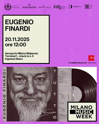 Per l’occasione, Finardi torna a esibirsi davanti a un pubblico particolarmente eterogeneo e internazionale: i passeggeri in partenza dallo scalo, che potranno assistere a un momento musicale unico nel suo genere.