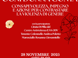 In occasione della Giornata internazionale per l'eliminazione della violenza contro le donne, l’amministrazione comunale di Samarate invita la cittadinanza all’incontro “Ogni donna conta: consapevolezza, impegno e azione per contrastare la violenza di genere”, in programma il 28 novembre alle ore 21 a Villa Montevecchio, in via Lazzaretto 1.