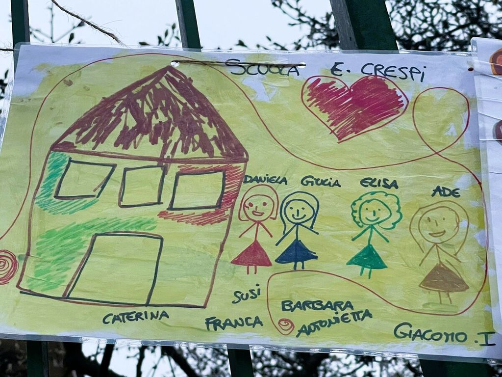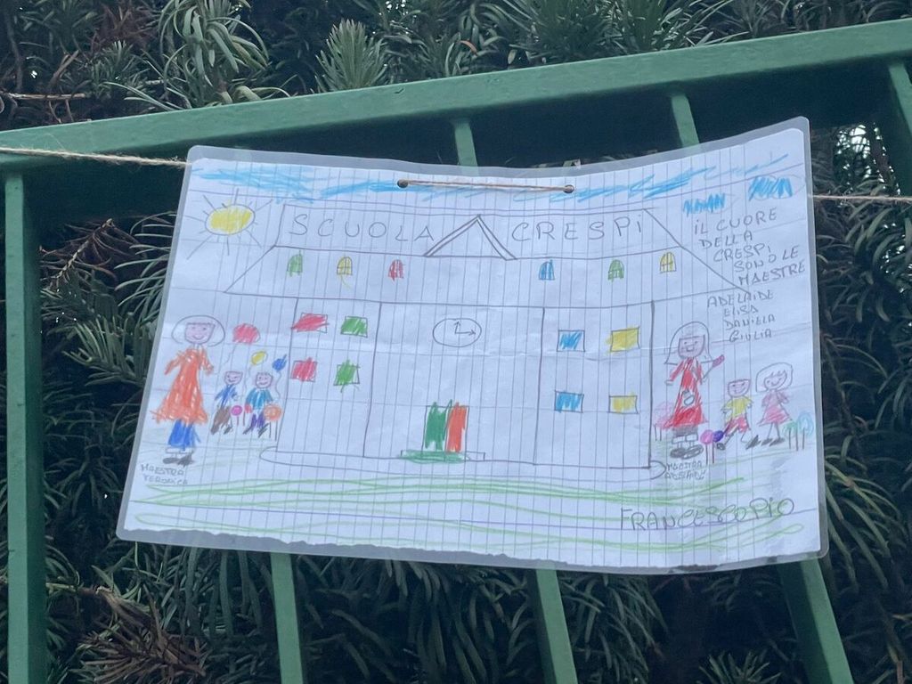 «Continuate a ricolmarci di pensieri felici e ricordatevi ogni giorno quanto il Crespi abbia incarnato il valore più alto "dell'essere educativamente al servizio di...". Don Bosco diceva: "Camminate coi piedi per terra e col cuore abitate il cielo": ecco, questa mattina più che mai, camminando verso la nostra scuola, abbiamo alzato lo sguardo e i vostri disegni hanno portato i nostri cuori fino al Cielo. Grazie, le vostre Maestre».