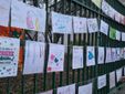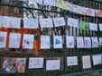 Arcobaleni, cuori, famiglie stilizzate e le impronte colorate di piccole mani. La recinzione della scuola dell'infanzia «Ezio Crespi», in via Bellini, questa mattina si è trasformata in una galleria d'arte a cielo aperto, un muro di affetto che ha sostituito il consueto striscione dell'istituto. Un gesto semplice ma potentissimo, organizzato da genitori e bambini per manifestare la propria vicinanza alle maestre e a tutto il personale della scuola, il cui futuro è in bilico a seguito della decisione della statalizzazione (LEGGI QUI, QUI e QUI).