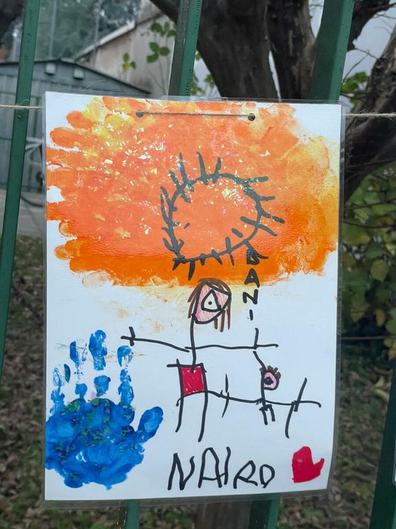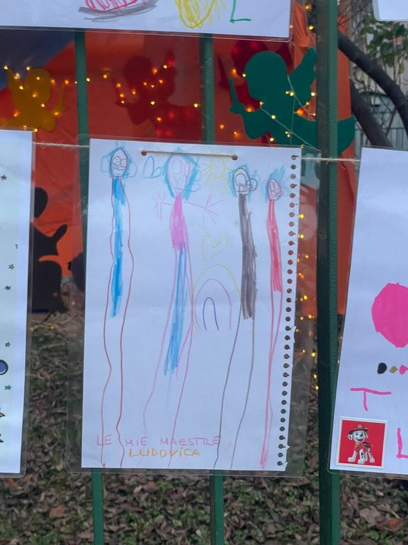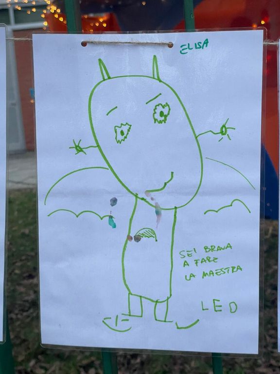 «Cari genitori e bambini», si apre il messaggio, «la sorpresa alla cancellata, stamattina, ha illuminato i nostri cuori e allargato i sorrisi sui volti di tutte noi. In giorni difficilissimi, pensieri inaspettati come questi ci danno la forza di attingere ulteriormente alla nostra professionalità e all'affetto grande che ci lega ai vostri bambini. Quel filo rosso che resiste e non si spezza, nonostante tutto».