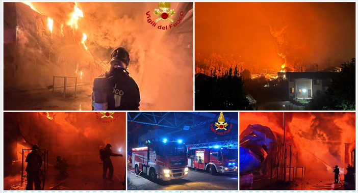 Le fiamme sono divampate prima di mezzanotte e hanno coinvolto un impianto di via Al Ronco. I bagliori dell'incendio visibili da lontano. Sul posto i vigili del fuoco. L'amministrazione comunale: «Intervenuti Ats e Arpa per eseguire la misurazione valori d’inquinamento, che sono monitorati e risultano in costante diminuzione»