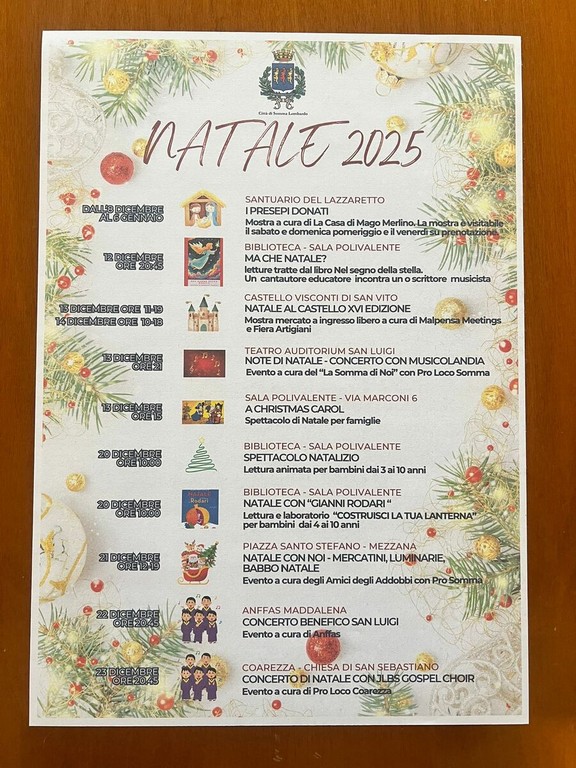 Una conferenza stampa attesa, quella di questa mattina in Comune, in cui Somma Lombardo ha svelato il calendario degli eventi natalizi che, dal 29 novembre al 6 gennaio, animeranno il centro e i quartieri. Un’edizione che si distingue non solo per la ricchezza delle proposte, ma anche per un messaggio forte e condiviso: il Natale come tempo di luce e di pace. «La facciata del municipio sarà illuminata dalla parola pace in tutte le lingue del mondo», ha annunciato l’assessore alla Cultura Donata Valenti, ricordando che la torre Viscontea ospiterà una frase di Madre Teresa di Calcutta, mentre la chiesa di Sant’Agnese sarà avvolta dalle parole poetiche di Gianni Rodari. Un segno visivo, culturale e civile che vuole coinvolgere tutta la comunità.