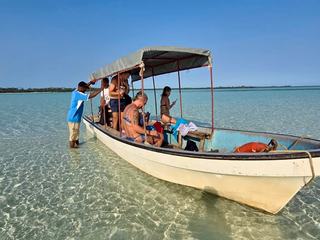 L’ultima sorpresa di Pemba è Sandbank, una lingua di sabbia che emerge in mezzo all’oceano e scompare con il gioco delle maree. Per raggiungerla, però, non tutto fila liscio. La barca tardava ad arrivare, e noi siamo rimasti bloccati in un campo in compagnia di un pastore e delle sue mucche, con il dubbio che non saremmo potuti partire. Una scena quasi surreale: il mare davanti, gli animali al nostro fianco, e l’incertezza di dover forse tornare a piedi dall’altra parte dell’isola. Il tempo passava, tra risate nervose e chiacchiere per sdrammatizzare, finché finalmente all’orizzonte è comparsa la barca. La traversata si è trasformata così in un piccolo trionfo. Il momento più divertente è stato quando alcuni di noi si sono messi a correre lungo la lingua di sabbia, con l’acqua che lambiva i piedi e l’orizzonte aperto tutt’intorno. Sandbank non era più solo uno spettacolo naturale, ma un frammento di gioia pura, concesso dalla marea.