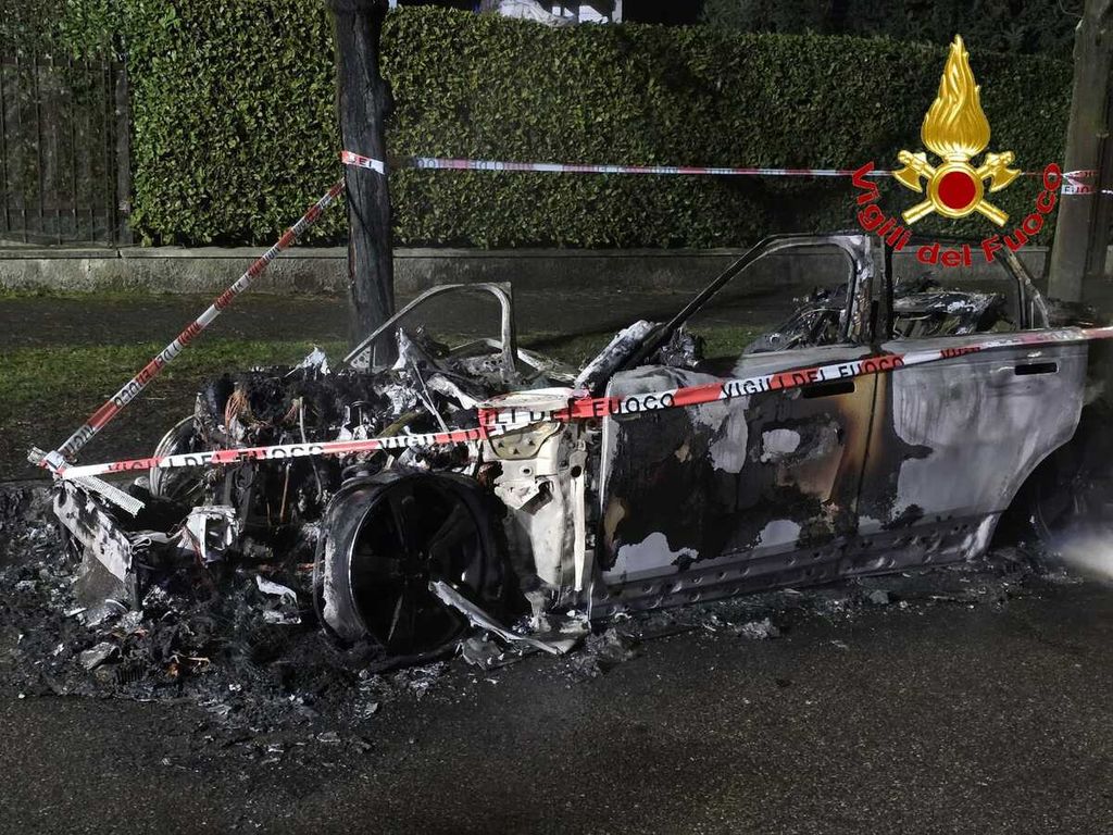 FOTO. Auto distrutta dalle fiamme nella notte a Busto