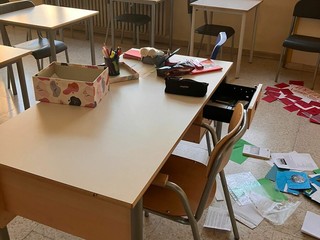 In prima battuta si è pensato a un furto. L'azione, avvenuta presumibilmente intorno alle 5 del mattino, è stata caratterizzata però da una violenza sulle cose sproporzionata rispetto a quanto - poco o nulla - è stato effettivamente sottratto. Le immagini scattate all'interno degli istituti raccontano di una furia cieca: porte blindate letteralmente scardinate dai muri, maniglioni antipanico divelti e gettati a terra, armadietti metallici aperti, buchi nei pannelli delle porte interne e materiale didattico sparso ovunque.