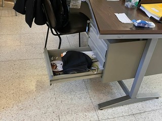 Nelle aule e negli uffici, i cassetti sono stati rovesciati sui pavimenti, tra cappotti e tastiere calpestate, nel tentativo confuso di trovare qualcosa di valore.