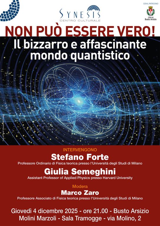 A questo tema affascinante il Centro Culturale Synesis ha dedicato una serata. Ad introdurci nel mondo dei quanti saranno due relatori d’eccezione, Stefano Forte e Giulia Semeghini.