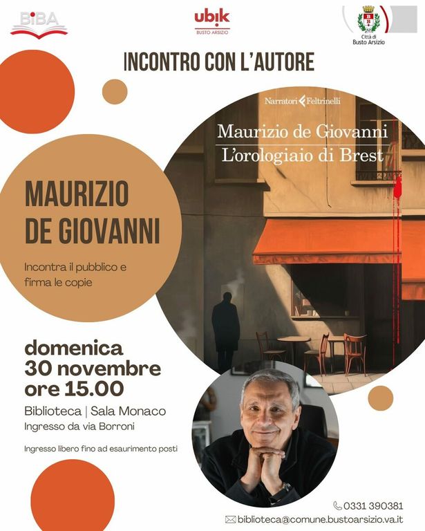 Domenica 30, per uno speciale firma copie, sarà presente in sala Monaco della Biblioteca Civica di Busto per incontrare i suoi lettori il papà del commissario Ricciardi e di tanti altri personaggi e situazioni al centro di numerosi romanzi famosi in tutto il mondo: ovvero Maurizio de Giovanni.