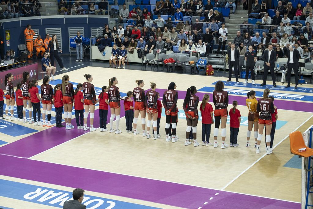 Seki 6.5; Parra 6; Torcolacci 6; Obossa 7.5 nettamente la migliore: qualità, peso offensivo e un primo set da protagonista assoluta; Battista 6; Van Avermaet 6.5; Pelloni 6.5; Gennari 6; Diouf sv; Parlangeli 6; Eckl 6; Schmit sv. N.e. Metwally, Di Gregorio. All. Barbolini 6.