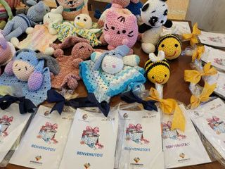 Al termine della cerimonia, le famiglie hanno potuto scegliere un manufatto realizzato all’uncinetto dalle volontarie del Knit Café, piccoli "amigurumi" (giocattoli lavorati all’uncinetto secondo l’arte e la tradizione giapponese) che rappresentano il calore e l’attenzione artigianale della comunità verso i nuovi arrivati. Un dono che ogni anno viene accolto con particolare apprezzamento sia dai bambini che dai genitori.