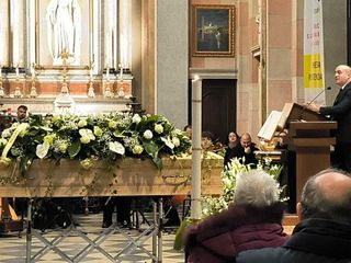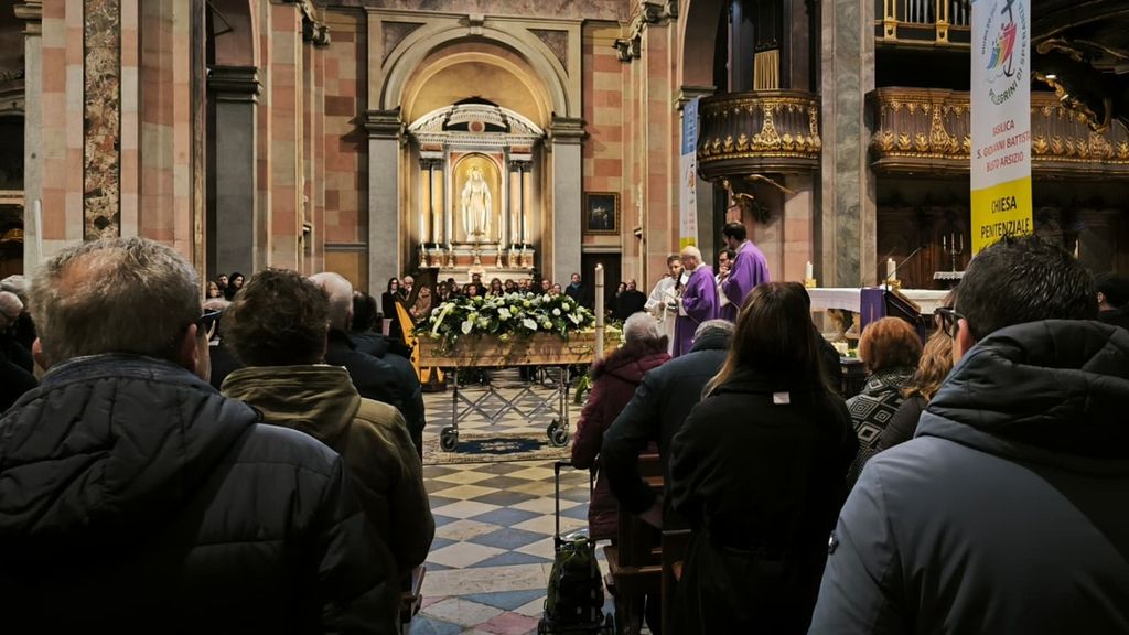 La chiesa era gremita in ogni ordine di posto già molto prima dell'inizio della funzione, con decine di persone rimaste in piedi lungo le navate laterali e sul fondo, in un silenzio rispettoso e carico di emozione. A rendere ancora più toccante l'atmosfera, le note delicate dei musicisti presenti a pochi passi dal feretro, che hanno accompagnato i momenti salienti di una liturgia sobria ma profonda.