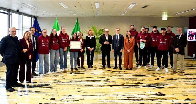La conquista della Coppa Italia nella scorsa stagione: il Consiglio regionale ha premiato la Pallamano Cassano Magnago per il suo primo titolo, ma anche per uno straordinario percorso sportivo iniziato oltre cinquant’anni fa, nel 1974. Questo pomeriggio il Presidente del Consiglio regionale Federico Romani e la Consigliera regionale varesina Romana Dell’Erba (Fratelli d’Italia) hanno consegnato la medaglia di Varese in bronzo al Presidente della Pallamano Cassano Magnago Renato Zanovello.